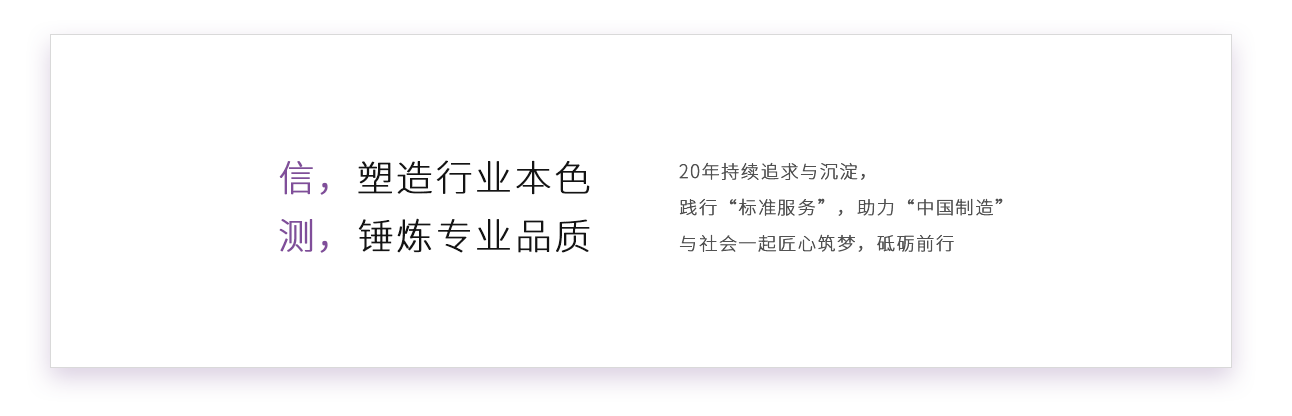 信測標準擁有多項專利技術和軟件著作權,先后獲得“國家級高新技術企業”、“廣東省中小企業公共技術服務示范平臺”、“江蘇省生產性服務業領軍企業”、“廣東省名牌企業”、“深圳市生產性服務業公共服務平臺”等稱號。公司秉承“立信、善測”的經營理念,致力于通過卓越的服務,幫助客戶提高研發和創新水平,提升產品質量,創造美好生活。